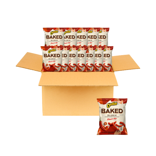 Enjoy the bold, spicy crunch of Cheetos Baked Flamin’ Hot in a convenient 0.875 oz bag. A lighter baked snack with all the fiery flavor you love.